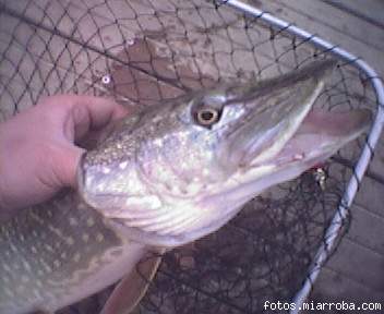 Ayer sábado quedamos a las 14:30 cuatro piraguas en el embalse de Ulibarri (Lander, Igor, Aitor y yo), ganas muchas pero los lucios ultimamente no entran demasiado bien... hacía bastante viento y no pudimos pescar el primer recodo como hubieramos querido. En el segundo Igor ya ha sacado uno mediano a currican con un pez, encontramos un tortuga muerta, cambiamos de señuelos, pero la cosa parece fría como nos ha pasado las últimas veces. Un poco a la desesperada (he de reconocer) pongo un super shad rap fire tiger empezamos a remar para salir del segundo recodo y al poco el pez deja de nadar bien, la punta de la caña ya no vibraba, me fijo y empieza soltar freno... levanto y parece que se menea, LUCIO!! grito... al poco me doy cuenta de que era algo  grande, la caña hart de bass que llevo dobla como un chicle, el carretito capricorn 2000 soltando la poca línea que le cabe, el resultado (no sé si se verá):