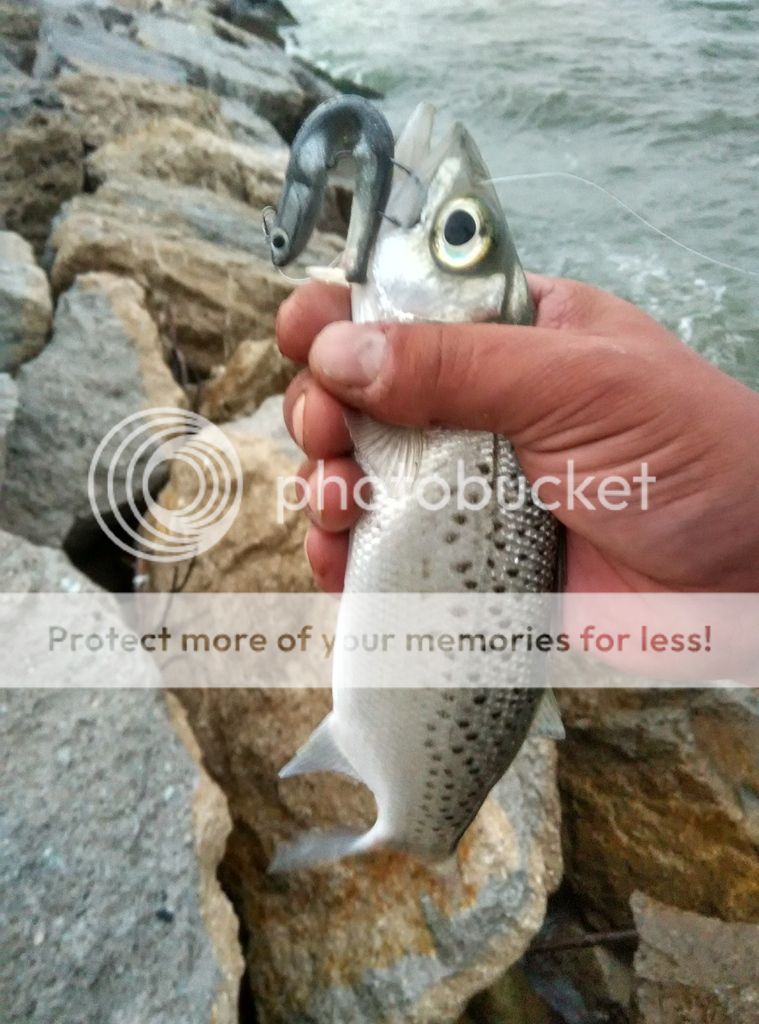 Y desde roca, mismo equipo, señuelos mas ligeros....
