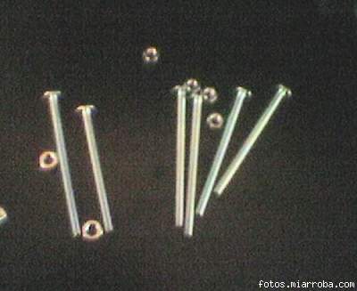 Tambien nos pasaremos por la seccion de tornilleria y cojeremos unos bien larguitos del tipo " M 6 "   , cuatro tornillos con sus tuercas cuestan sobre los 2 € asi nos llegara para 2 cañeros ( yo ya tenia pero no se os olvide tener las imprescindibles arandelas )