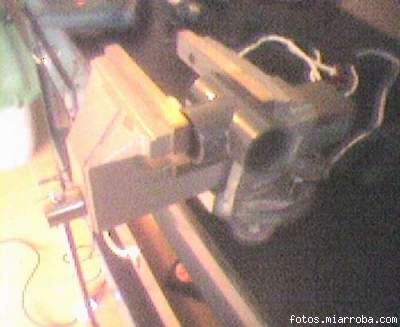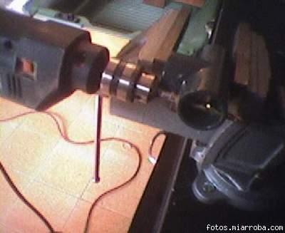 Encajamos la " y " en la base y atravesamos ambas con el taladro , en si queda bien sujeto pero para darle mas seguridad mejor que tenga un tornillo atravesado , como veis en la foto le e puesto una tuerca , pero mejor es ponerle una palomilla para hacer el sistema desmontable