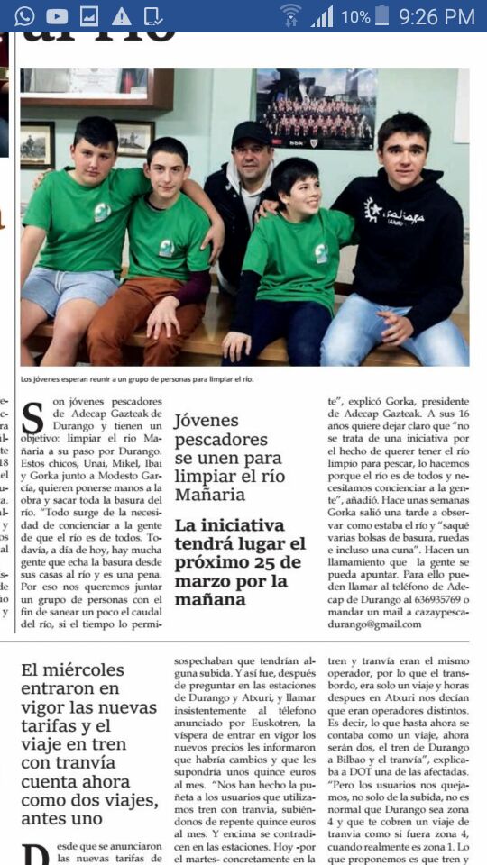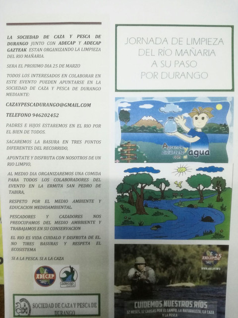 Bueno, al igual que hace dos años, este año la sociedad de caza y pesca de durango junto con Adecap y Adecap Gazteak hemos organizado una limpieza en el río Mañaria.