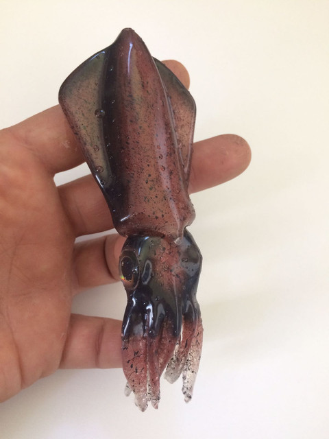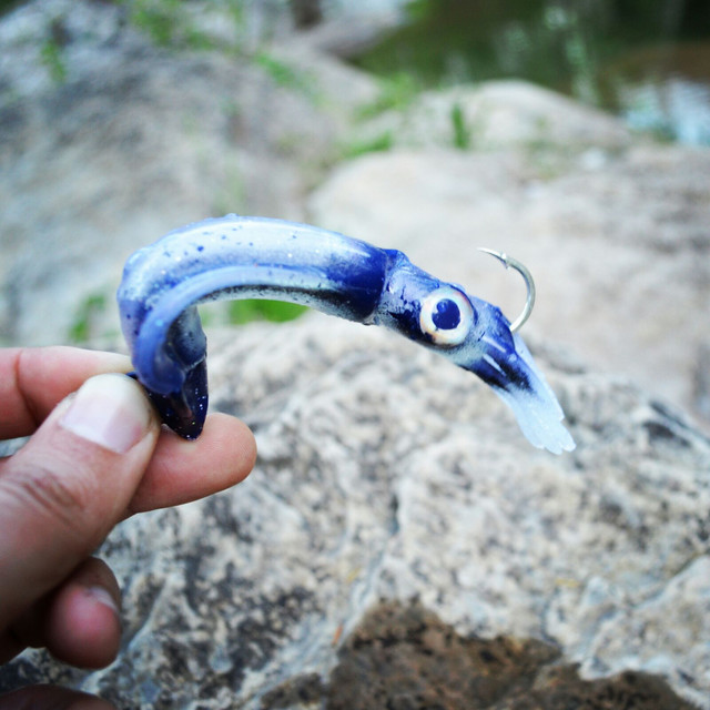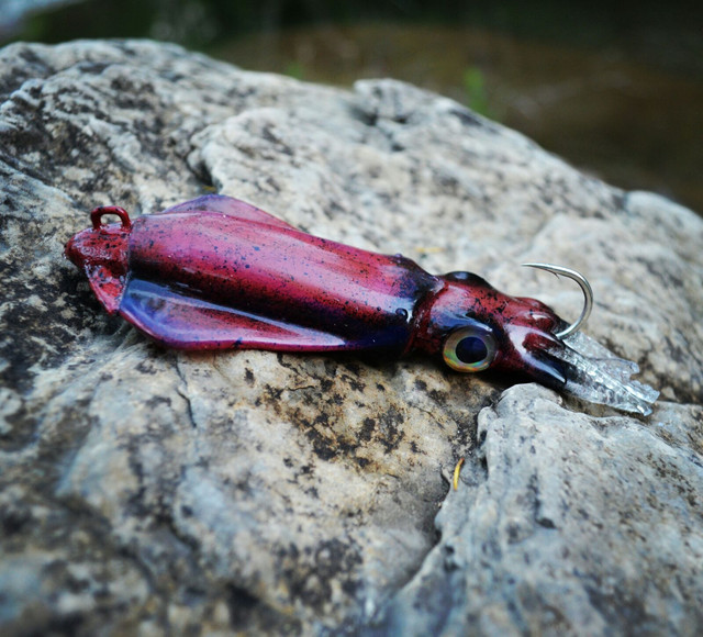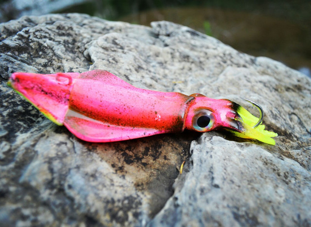 El calamar de vinilo es una preciosidad y no creo que ningún pez (robalo, corvina, dentón, pargo.....etc) se lo valla a pensar dos veces antes de atacar, pero su gama de pesos no entra en los señuelos que yo uso en mis pesqueros, por ese motivo, si me tocase alguno  lo dono automaticamente al concurso o foro para ser sorteado de nuevo, o en caso de no poderse lo regalo a algún compañero que pueda darle el uso que yo no puedo.