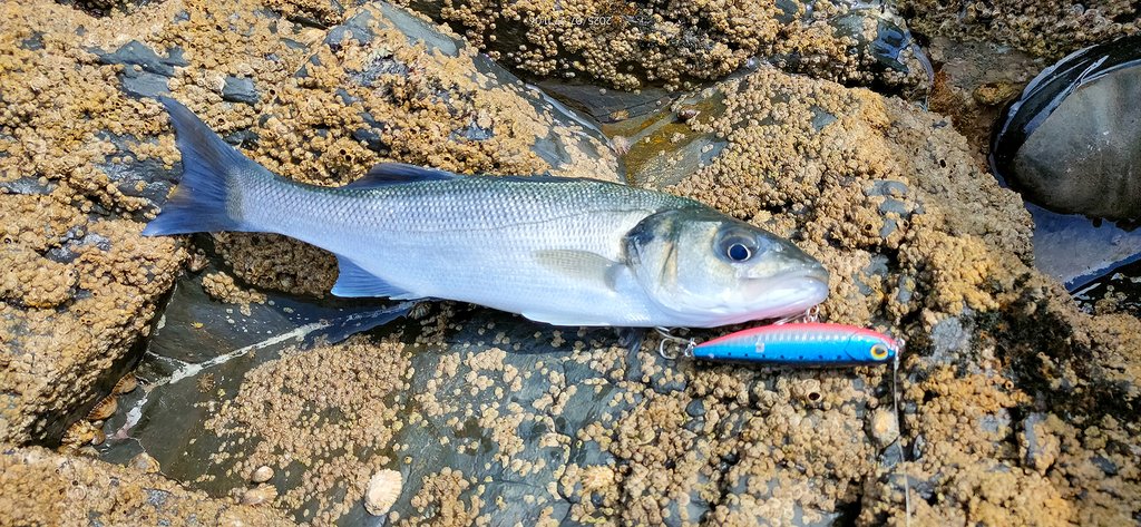 He constatado los últimos días la entrada a costa de lubinas de entre 30 y 45 cm, la mayoría están bastante delgadas y no me cuadra con las condiciones del mar en esta zona.