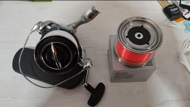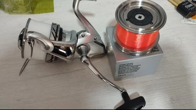 Carrete sin estrenar. Bobina de repuesto ambas cargadas con hilo del 0,18