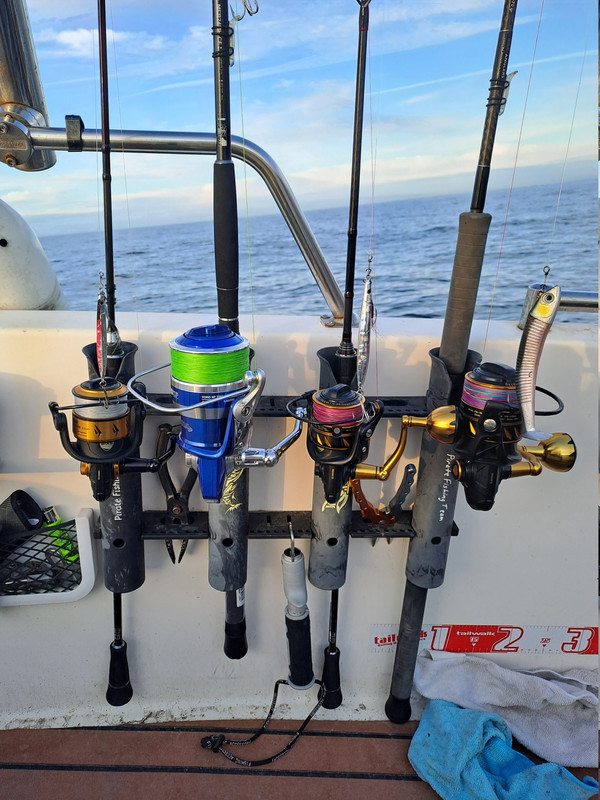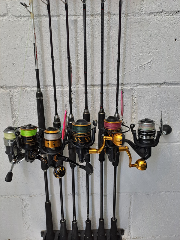 Como ves tenemos varios penn y el azul es un hart. Lo usamos para embarcación. Los penn son una pasada tanto de fuerza como de calidad. El hart lo tengo por que aguanta 25 kilos de freno y va con una daiwa megaforce para intentar parar a peces mayores.