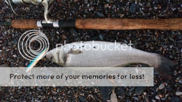 Esta mañana, con el agua como el caldo del puchero, es lo único que se han comido. La lubina de 38 centímetros atacó en los pies, con el señuelo quieto mientras se retiraba la ola.